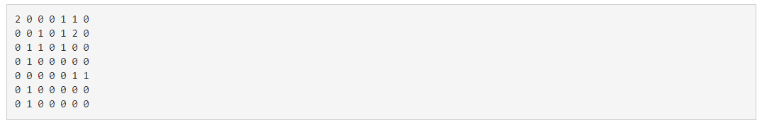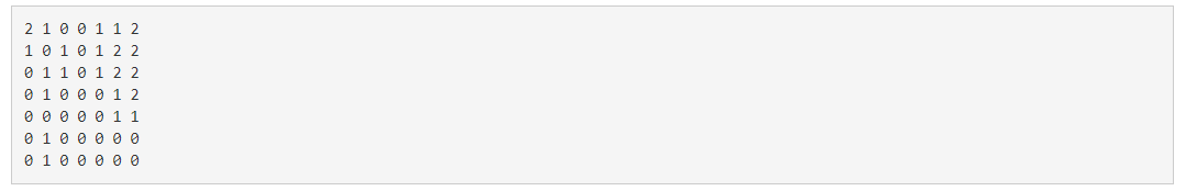 둘째 줄부터 N개의 줄에 지도의 모양이 주어진다. 0은 빈 칸, 1은 벽, 2는 바이러스가 있는 위치이다. 2의 개수는 2보다 크거나 같고, 10보다 작거나 같은 자연수이다.