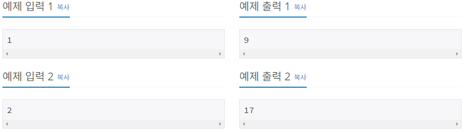 첫째 줄에 N이 주어진다. N은 1보다 크거나 같고, 100보다 작거나 같은 자연수이다.