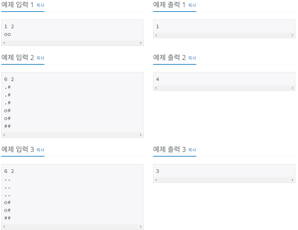 둘째 줄부터 N개의 줄에는 보드의 상태가 주어진다.