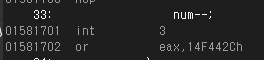 그 이유는, 실제 14F442C번지에 값이 누산 레지스터에 값이 들어갈때