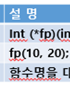 728x90 function pointer1 함수 포인터(Function Pointer) 와 보이드 포인터(Void*) □ 함수 포인터 - 실행 코드인 함수의 주소를 다루는 포인터 - 함수의 이름은 함수가 있는 메모리의 시작주소가 된다. 함수명이 함수의 메모리의 주소이므로, 함수 포인터에 저장하면 함수를 다양한 방식으로 호출 할 수 있다. 함수 형태는 매개변수의 개수와 자료형, 그리고 반환값의 자료형으로 정의 한다. □ 함수 포인터 배열 - 함수 포인터를 배열에 저장하여 사용할 수 있다. □ 예제로 함수 포인터 살펴보기 함수 포인터를 선언할때 매개변수의 타입 또는 갯수를 설정해주지 않은 경우에는 가리키는 함수의 매개변수 형태와 상관없이 (반환값은 일치해야함) 정상적으로 실행되는 모습을 볼 수 있다. 하지만, 함수 포인터의 매개변수 형태(갯수)를 지정해놓은 경우, 갯수가 맞지 않아 컴파일시 다음과 같은 오류를 보게된다. 에.. 2016. 11. 2. 이전 1 다음 728x90